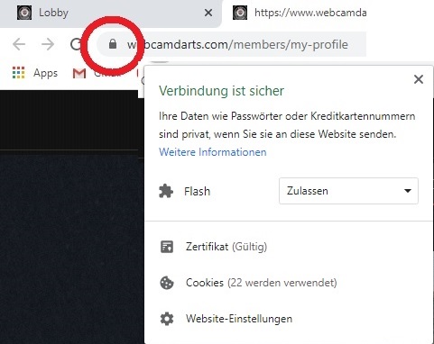 2)Wenn Sie die Flash nicht sehen die Sie zulassen können, klicken Sie mit der Maustaste auf das kleine Vorhängeschloss in der Adressleiste Ihres Browsers und dann auf "Website-Einstellungen".