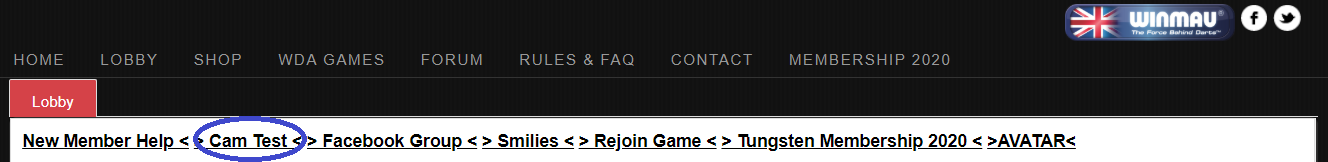 Es wird dringend empfohlen, dass Spieler nur externe Web-Cams verwenden, da eingebaute Laptop-Cams häufig nicht hoch genug sind und zu kaputten Laptop-Bildschirmen durch Dart-Bounce-Outs führen können!