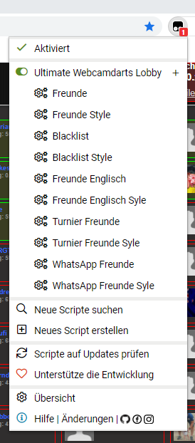 dann klicke einfach auf den grünen Schieber bei "Ultimate Webcamdarts Lobby" und schon ist nach einem Neustart alles wieder beim alten.