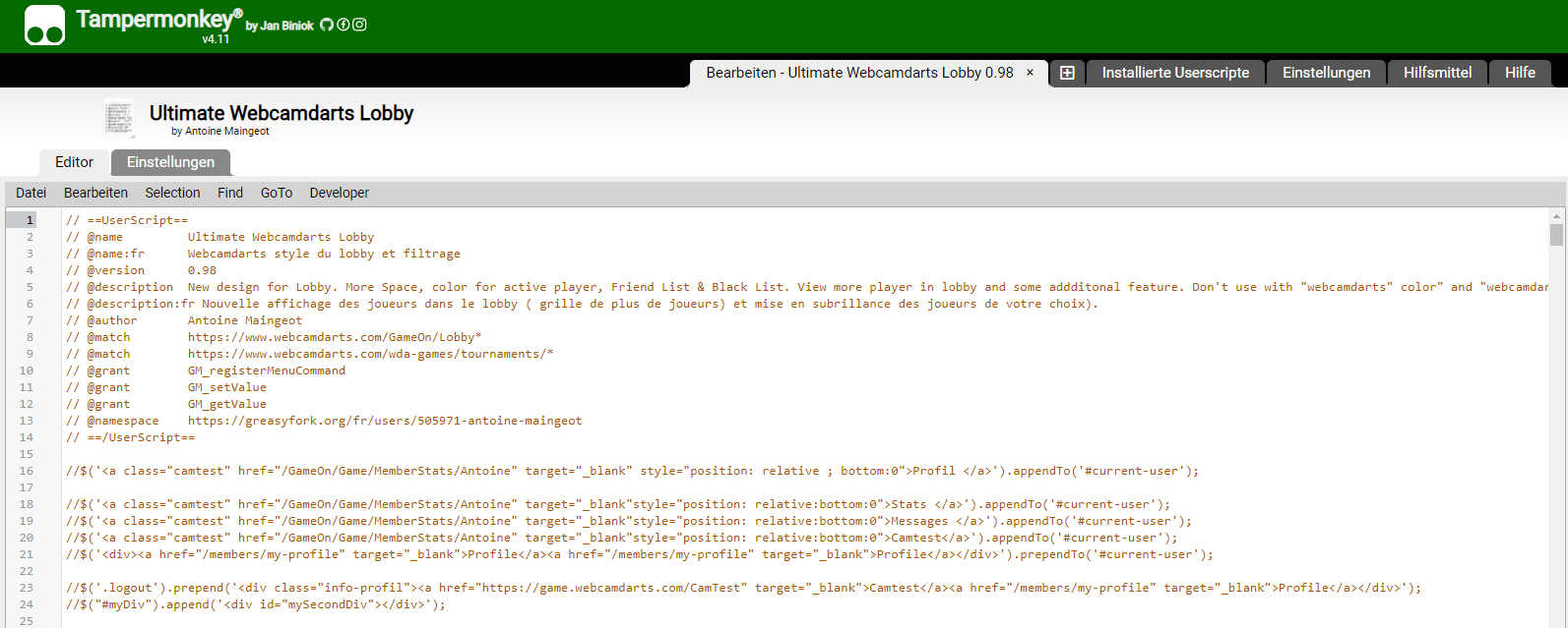 Dann die nachfolgende Datei downloaden, mit einem Editor öffnen dann den Inhalt kopieren und in das Lobbyskript wieder einfügen.