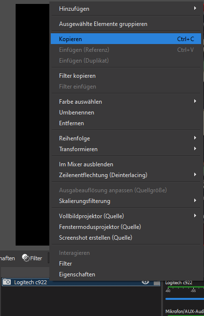 Jetzt mit der rechten Maustaste auf eure Kamera und dann auf "kopieren" klicken