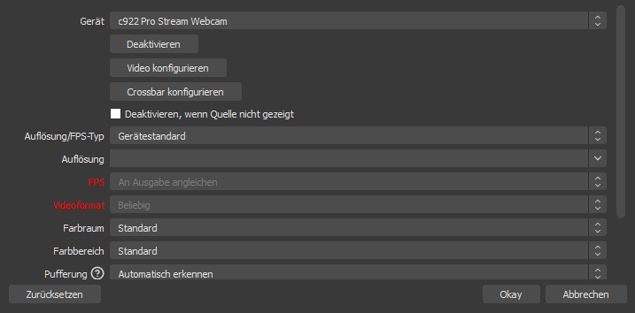 als neue Quelle wählt ihr eure Webcam aus.