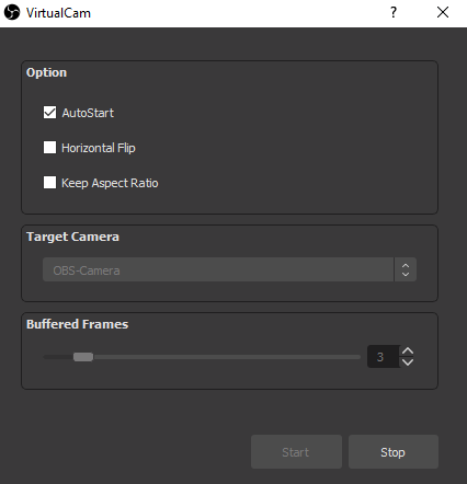 Mit dem Start-Button aktivierst Du schließlich die Webcam von Virtual Camera.