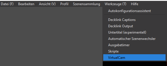 Wähle hier als nächstes VirtualCam aus.